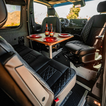 That’s what we aim for at Exclusive Outfitters: a van interior that doesn’t just transport you but transforms around you. Every seat, every bed, every inch is designed with movement in mind – modular, durable, and effortlessly comfortable.
